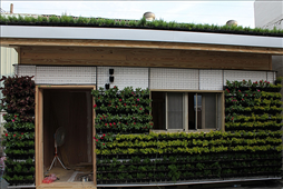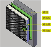 植栽乾掛板,兩外側有適當之間距,具透氣性,可利用自然空氣冷熱對流,降低建築物室內溫度,減少噪音分貝數,使植物生長良好